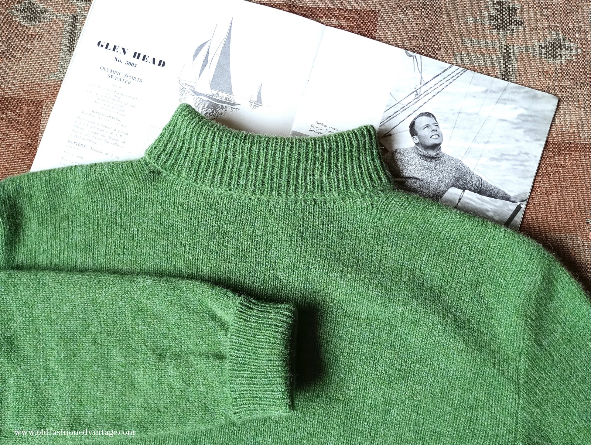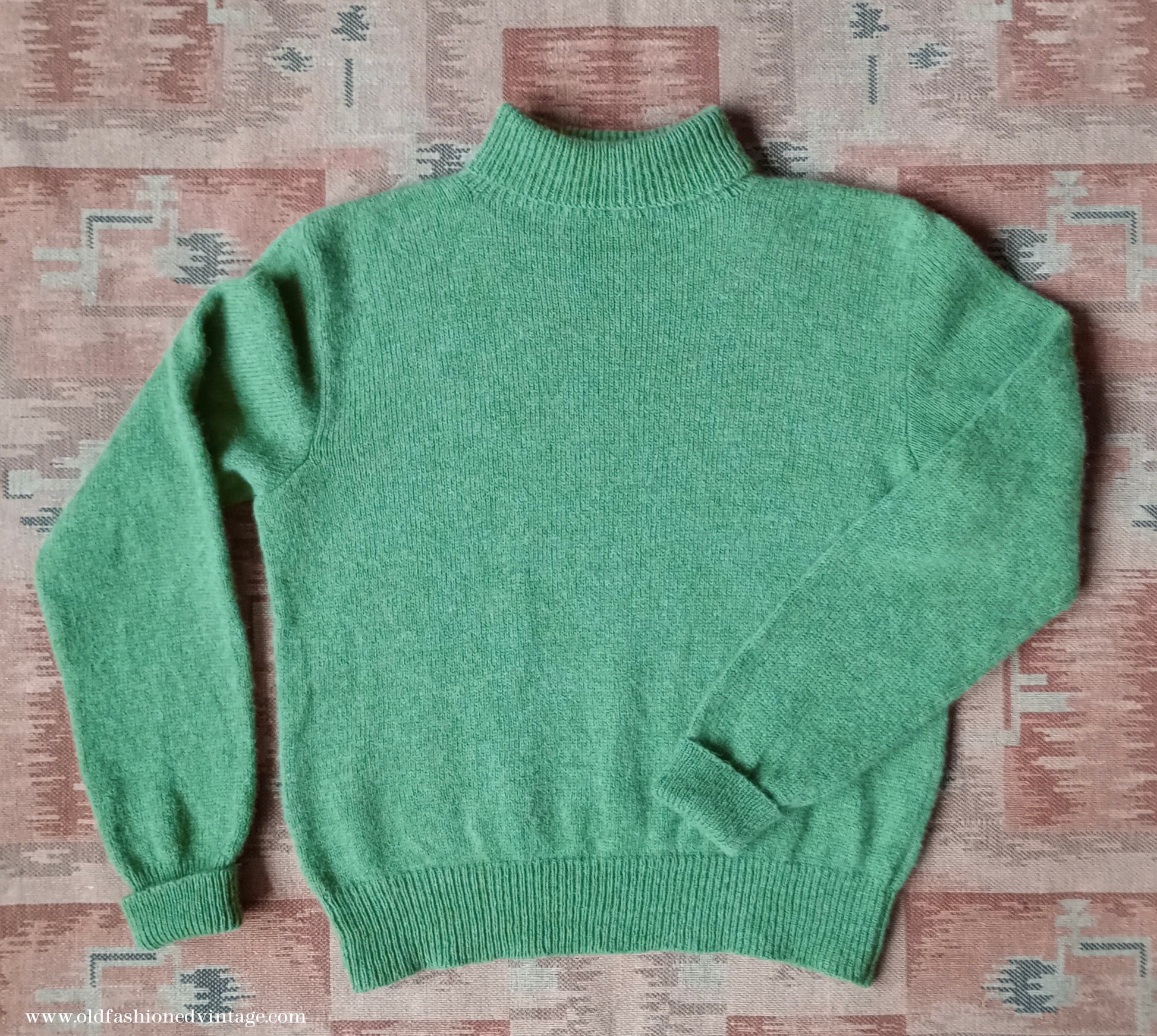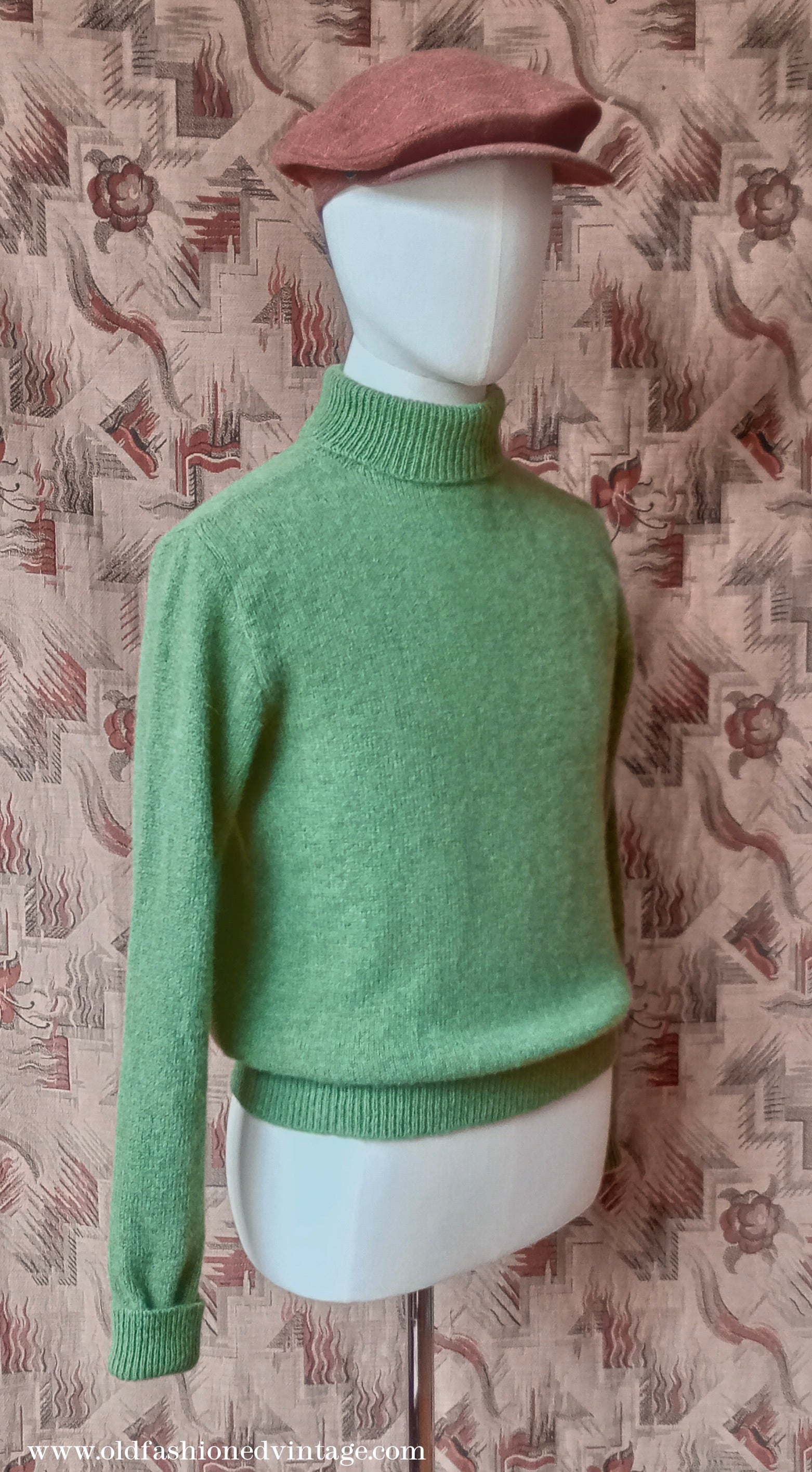 Old Fashioned Garments Vintage Reproduction 1930s 1940s Mens Roll Neck Jumper Green Shetland Wool Polo Turtle Sweater Medium
