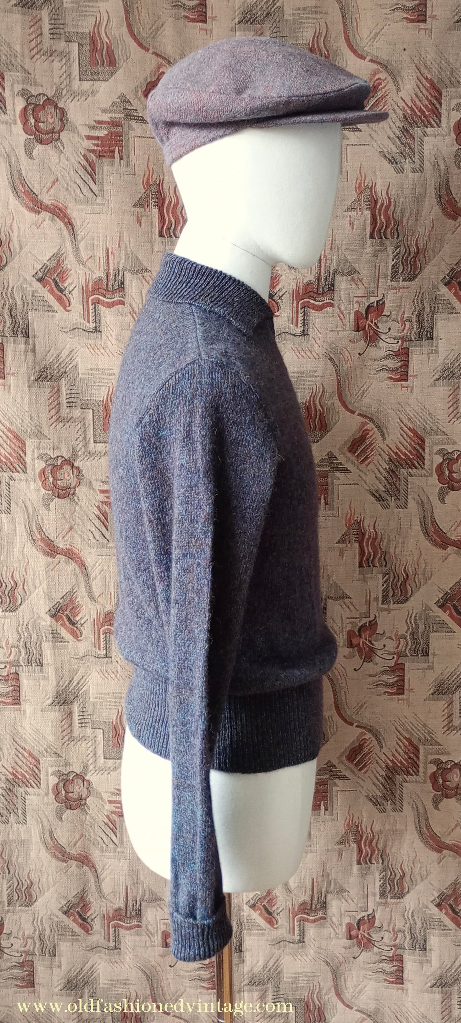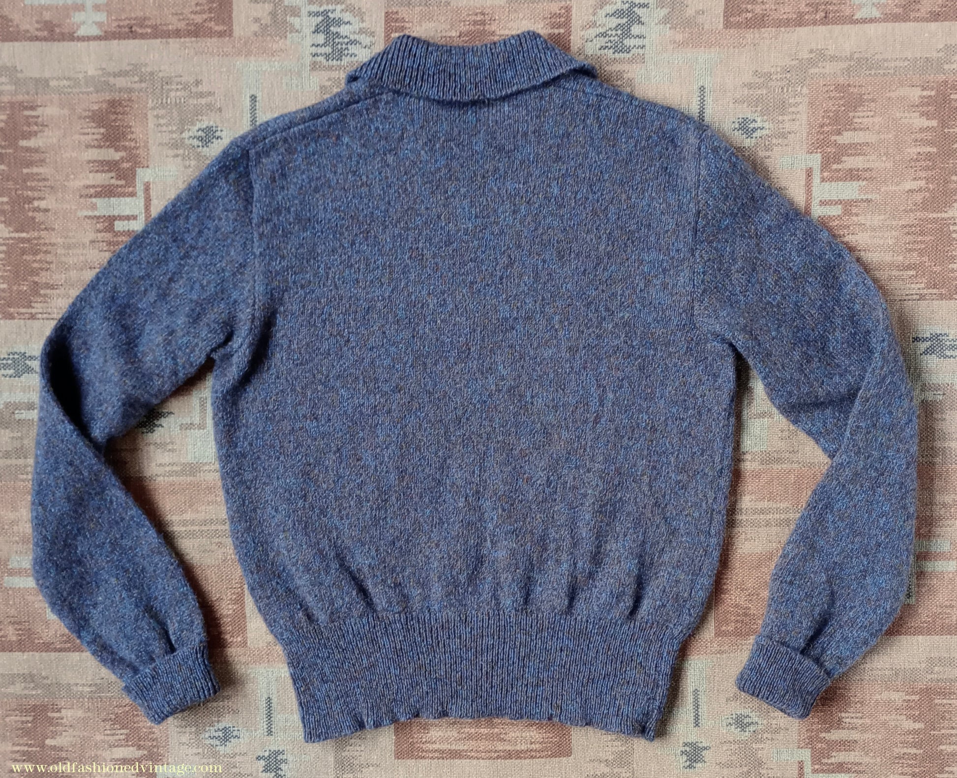 Old Fashioned Garments Vintage Reproduction 1940s Mens Zip Neck Jumper Purple Blue Heather Marl Polo Collar Sweater Lumberjacket S
