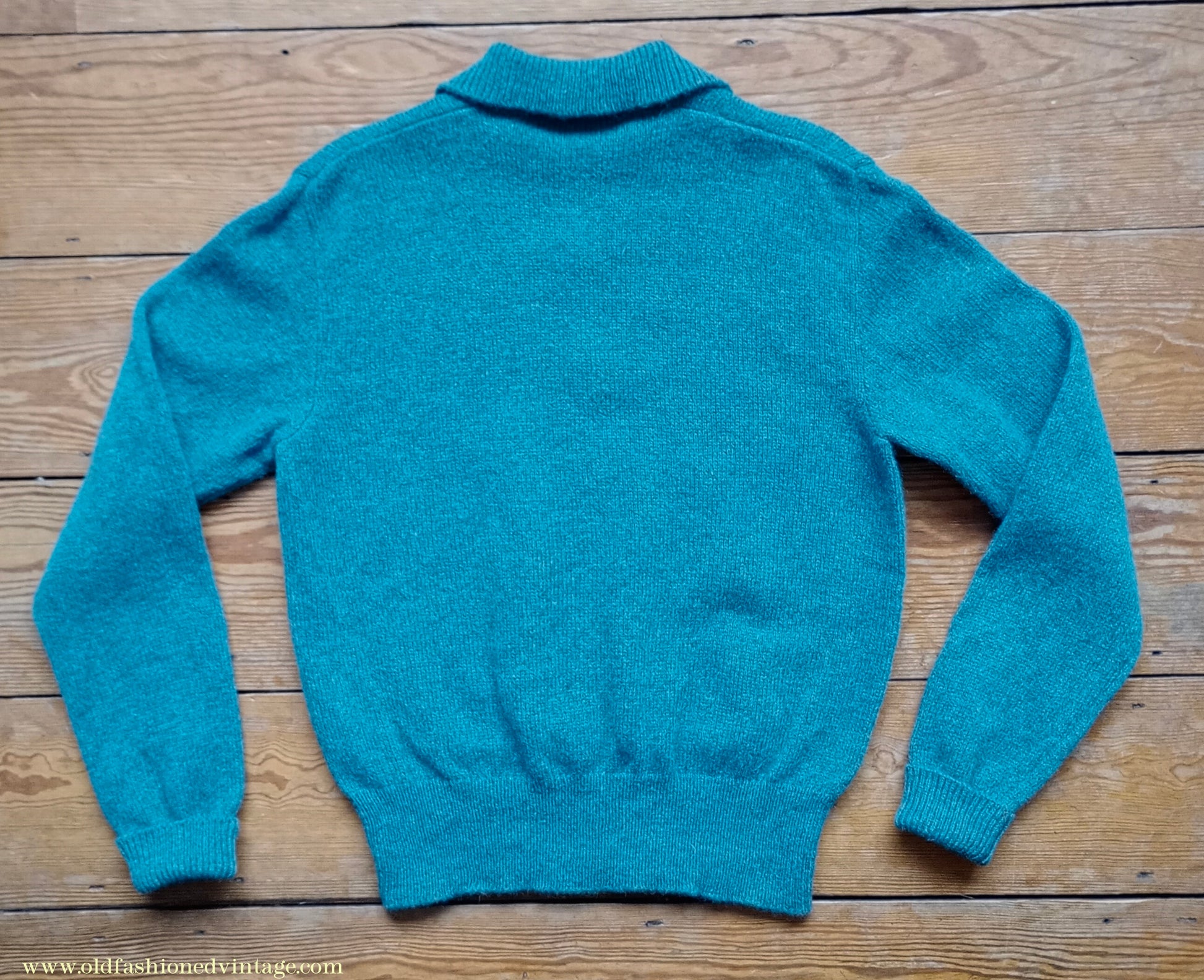 Old Fashioned Garments Vintage Reproduction 1940s Mens Zip Neck Jumper Azure Blue Polo Collar Sweater Lumberjacket M