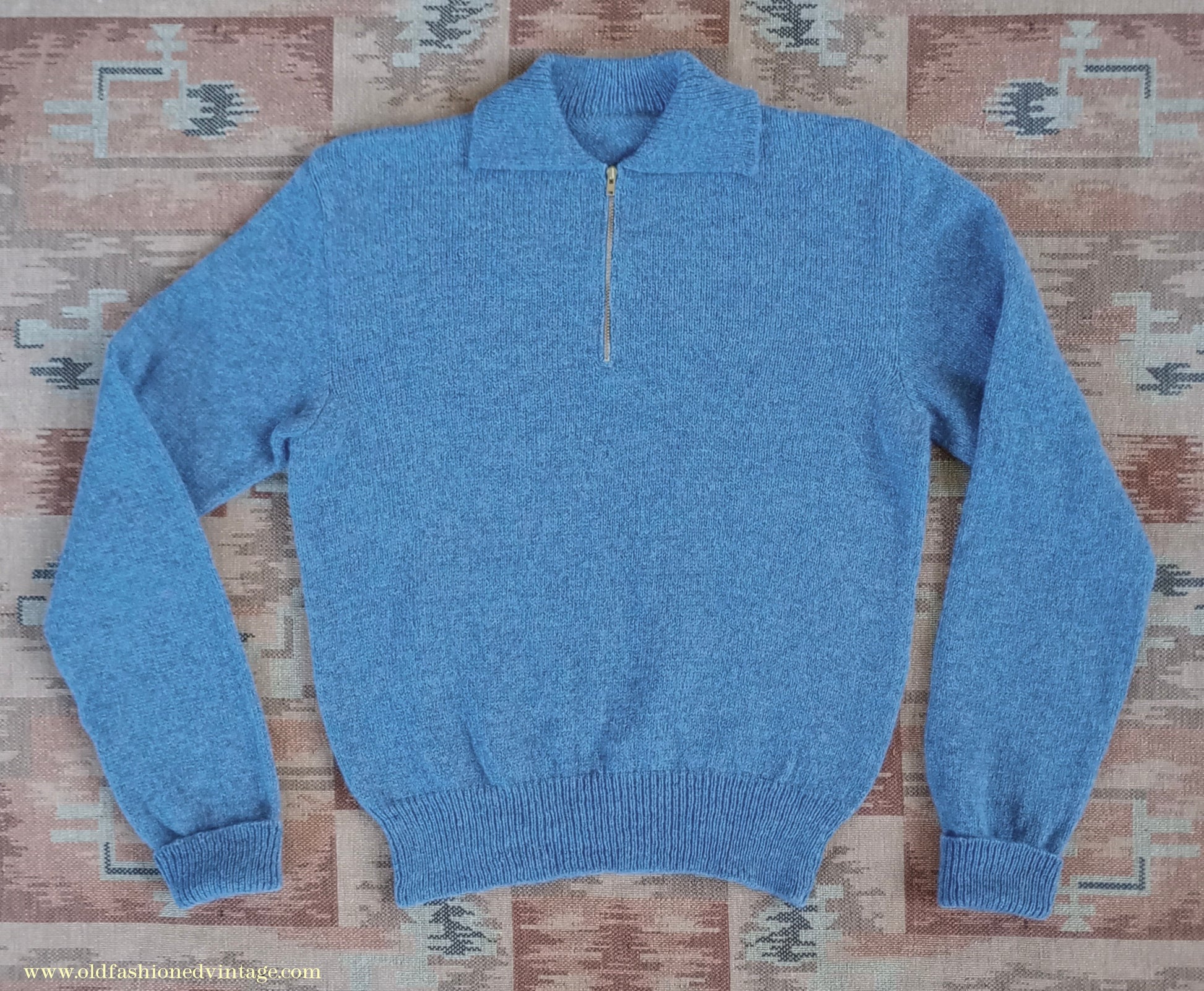 Old Fashioned Garments Vintage Reproduction 1940s Mens Zip Neck Jumper Polo Collar Sweater Lumberjacket Small