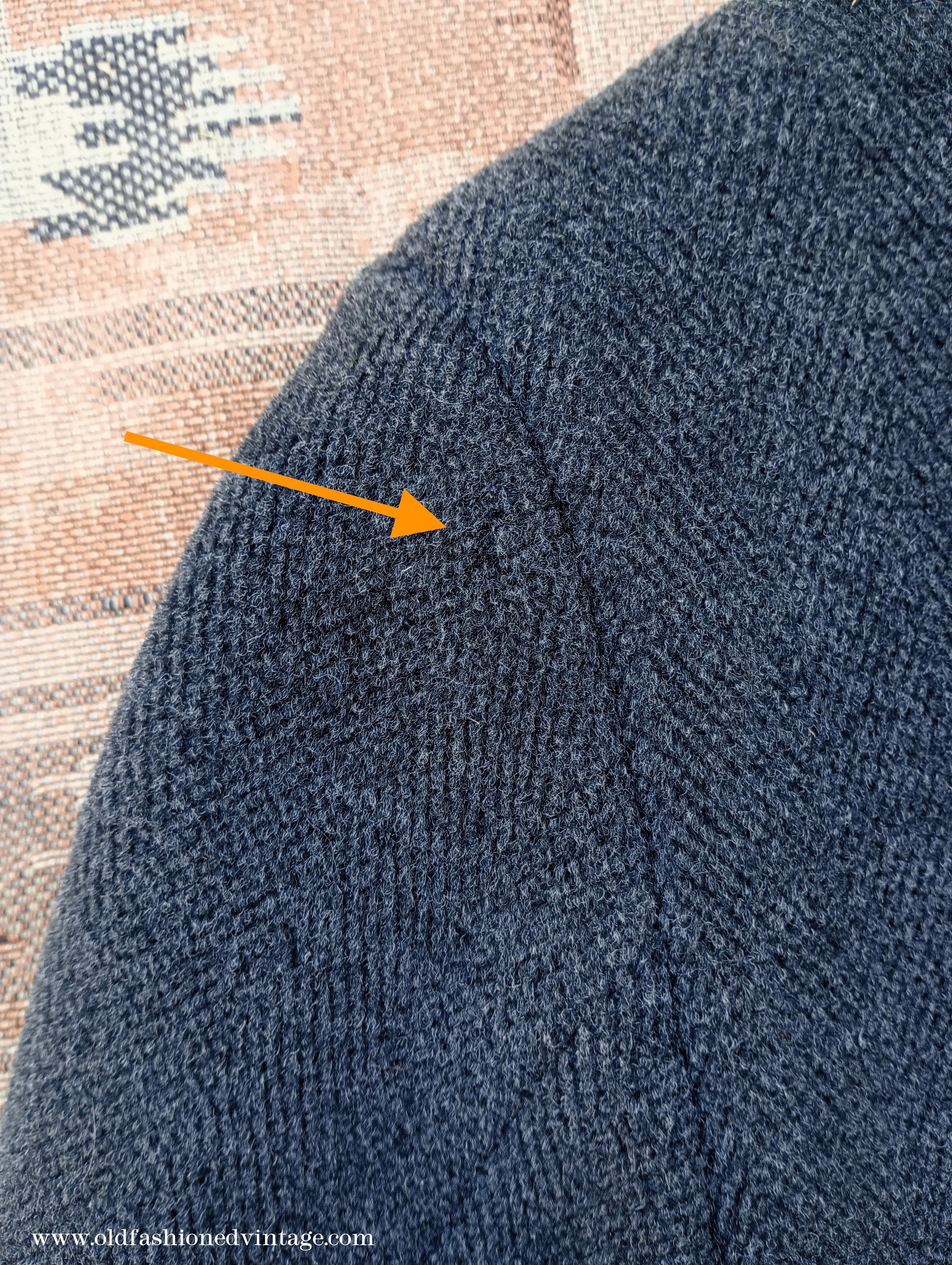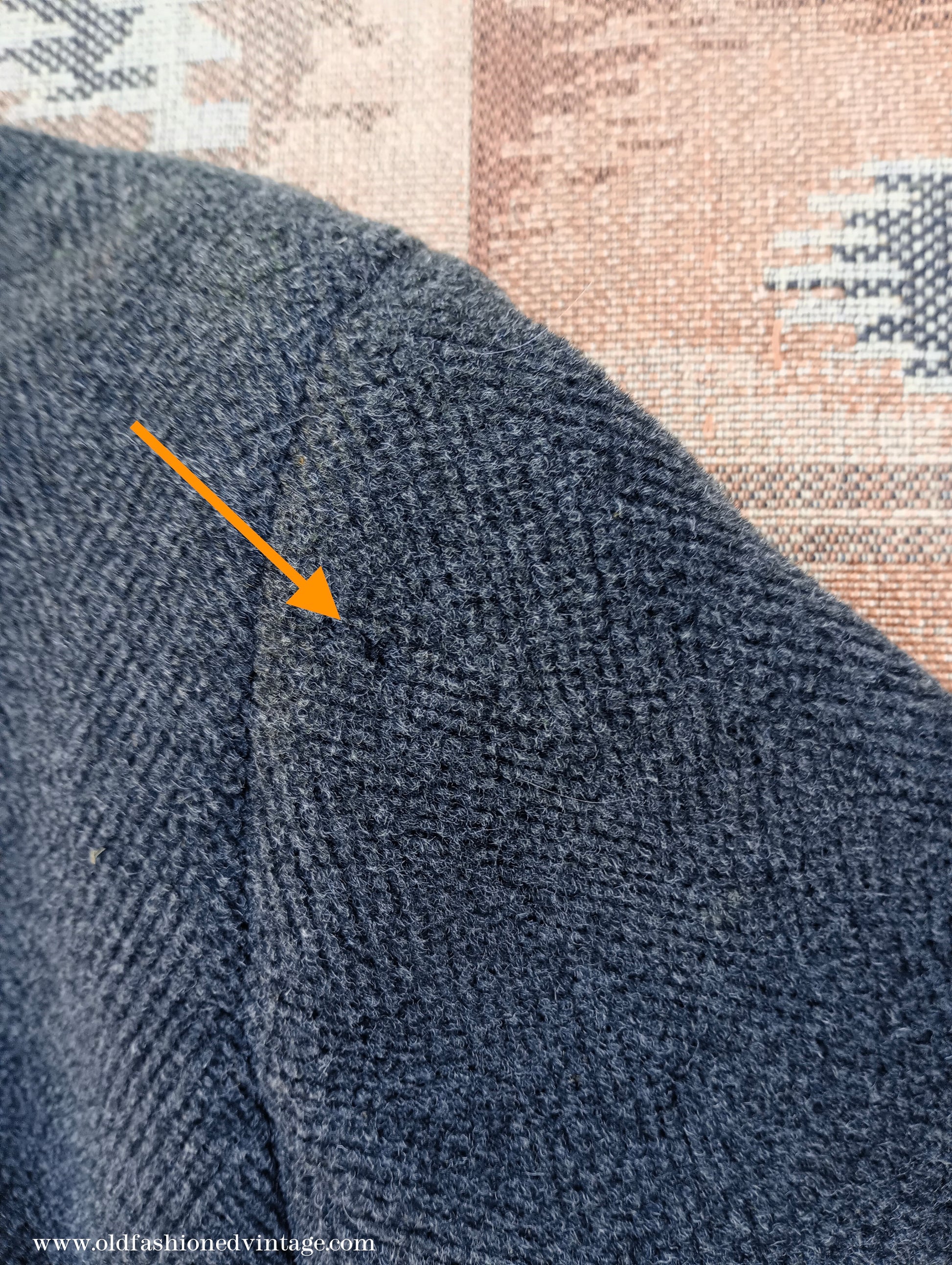 In good condition with light wear overall - on closer examination there are a few scattered surface nips, most noticeably one on each shoulder (arrowed) - slight fade or yellowing across the shoulders & back collar - the buckle covering is dry & splitting - the inside jigger button is missing - a few marks & scuffs to the lining. Has been thoroughly steamed & brushed prior to listing.
