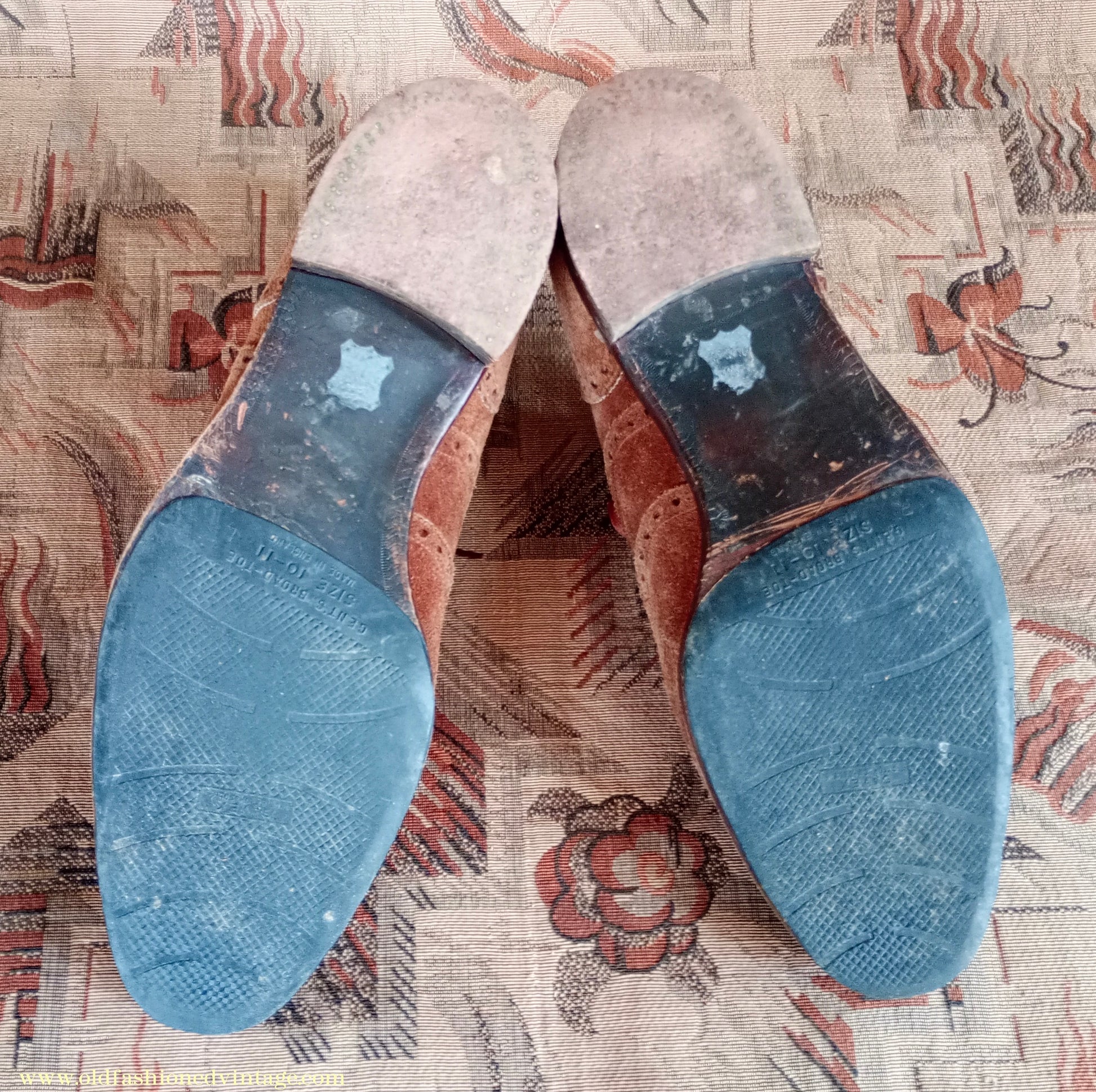 Quality vintage circa 1960s brogue shoes made in Northern Ireland by 'Skerry' from mid brown suede. They have a wing tip toe, 5-hole lacing, leather soles with 'Savex' rubber stick-ons & leather heels, full leather lining & leather footbed.