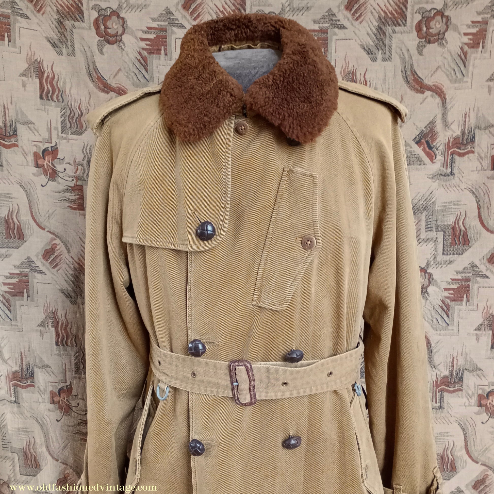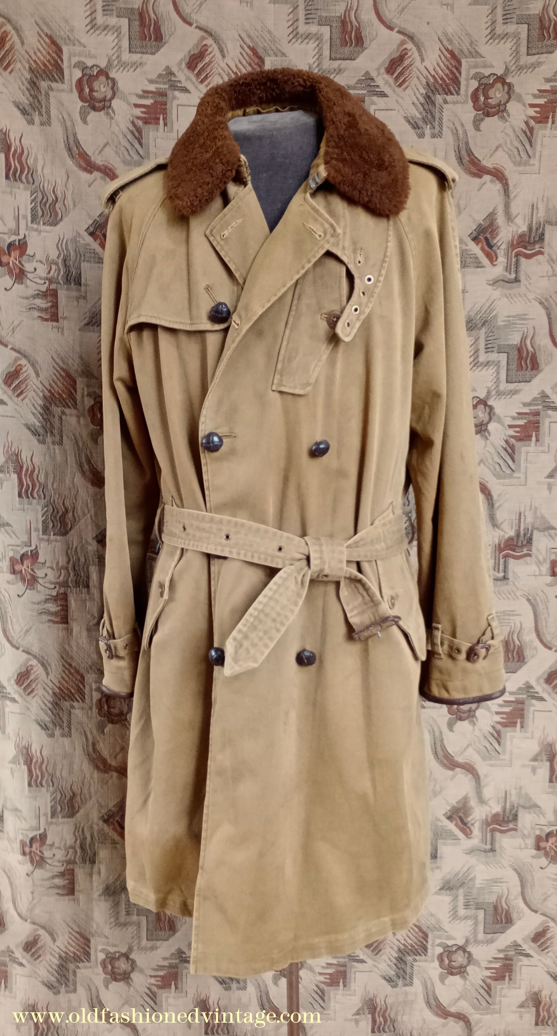Vintage Mens Polo Ralph Lauren Fur Collar Trench Coat Aviator Motoring WW1 1920s 1930s Style L